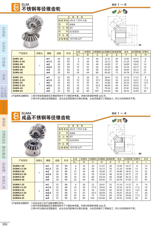 SUM不銹鋼等徑錐齒輪